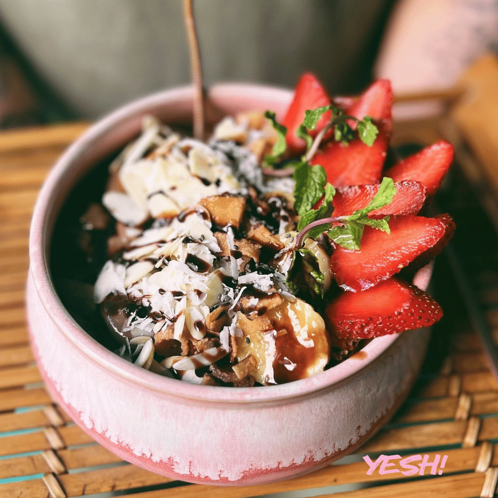 cacao, coconut cream, peanut butter, mango, homemade granola, nuts & fruits